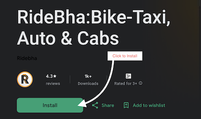 1. Download the Ridebha App from the Google Play Store / App Store.